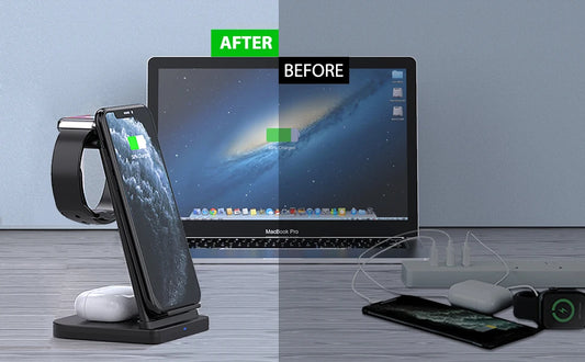 Chargeur sans fil pliable 15W à charge rapide, station portable 3-en-1 avec port Type-C